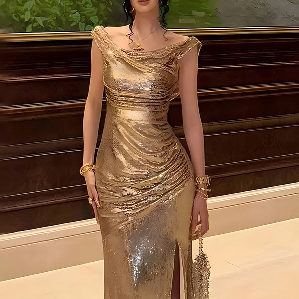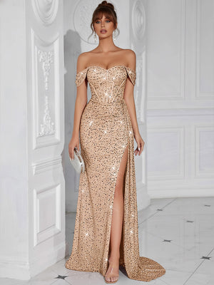 Sequin Off Shoulder Prom Dresses Bodycon Sparkly High Slit