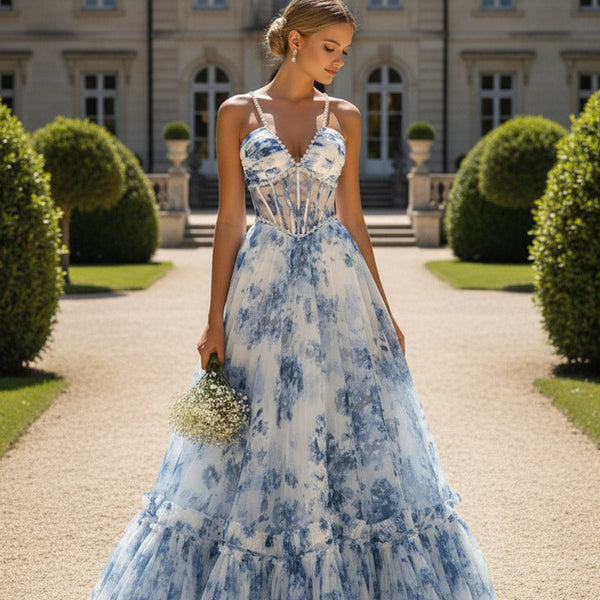 Sweetheart Pleated Chiffon Tiered A-Line/Princess Long Prom Dresses with Drop Waist