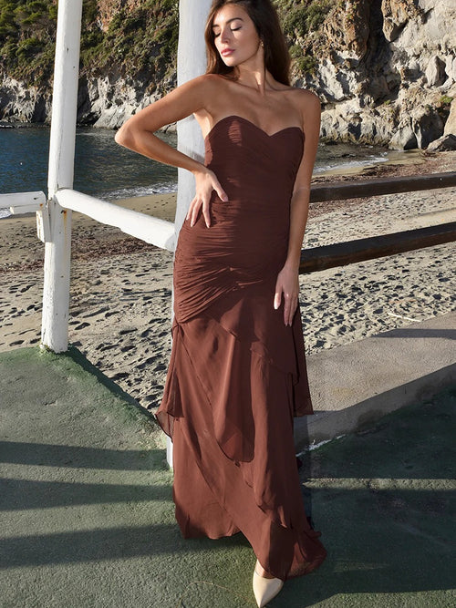 Mermaid/Trumpet Strapless Ruched Floor-Length Wedding Guest Dresses with Scarf