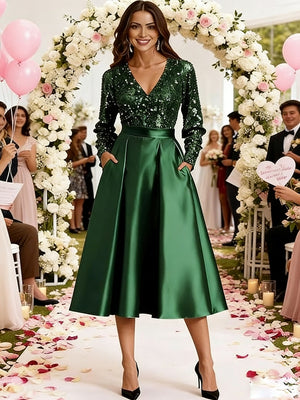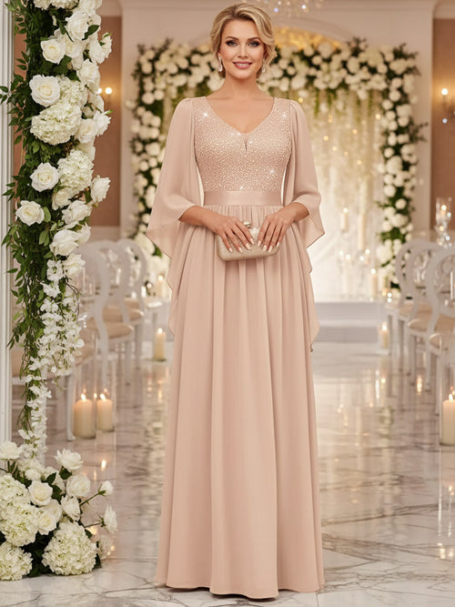 A-Line/Princess V Neck Long Sleeve Floor-Length Mother of the Bride Dresses with Sequin