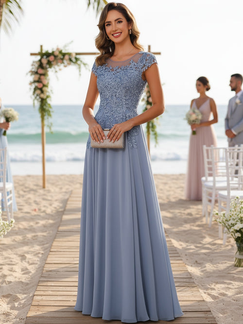 A-Line/Princess Scoop Neck Cap Sleeve Floor-Length Mother of the Bride Dresses with Lace Applique