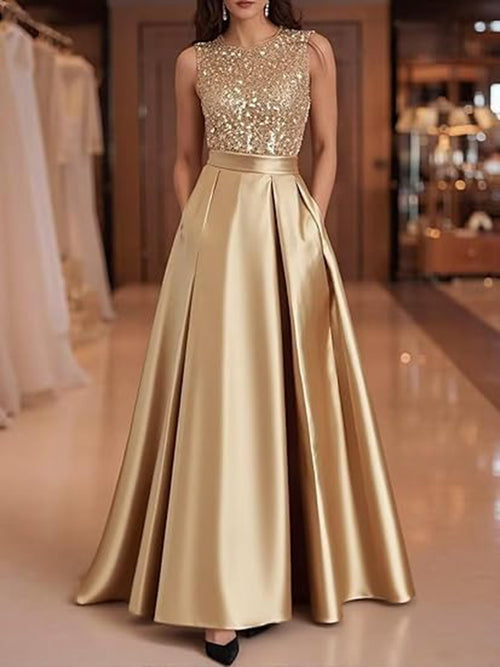 Mermaid Sequin Sleeveless Floor-Length Fancy Prom Dresses with Satin