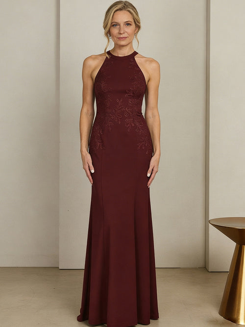 Sheath/Column Halter Scoop Neck Floor-Length Mother of the Bride Dresses with Lace Appliques