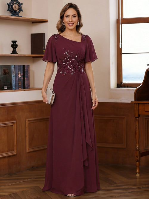 A-Line/Princess Boat Neck Asymmetrical Floor-Length Mother of the Bride Dresses with Sequins
