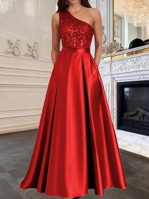 A-Line/Princess One Shoulder Empire Waist Floor-Length Formal Evening Dresses with Sequin