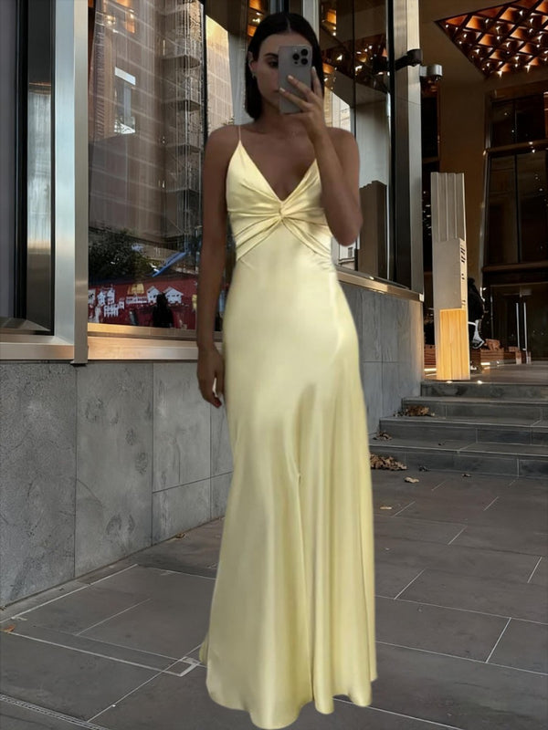 Mermaid/Trumpet Spaghetti Strap V Neck Floor-Length Prom Dresses with Satin