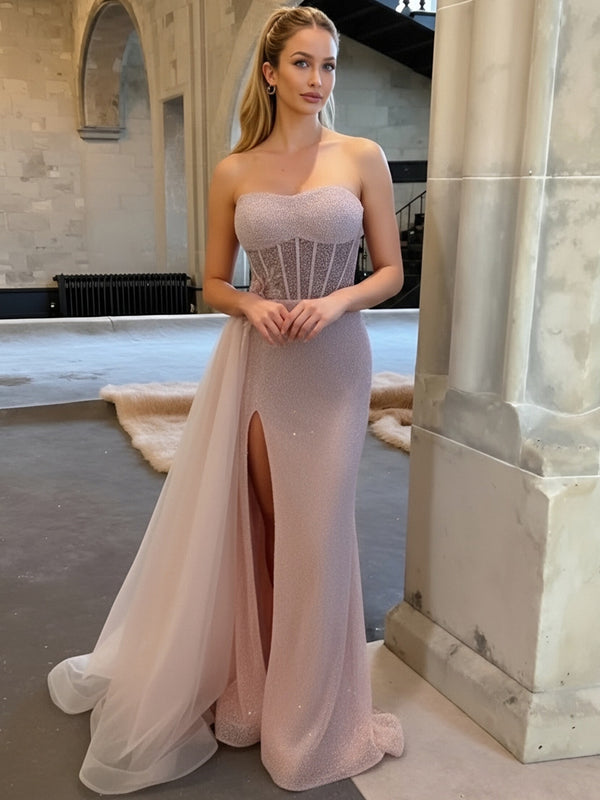Sparkly Sequin Sweetheart Strapless Mermaid/Trumpet Long Prom Dresses