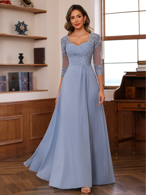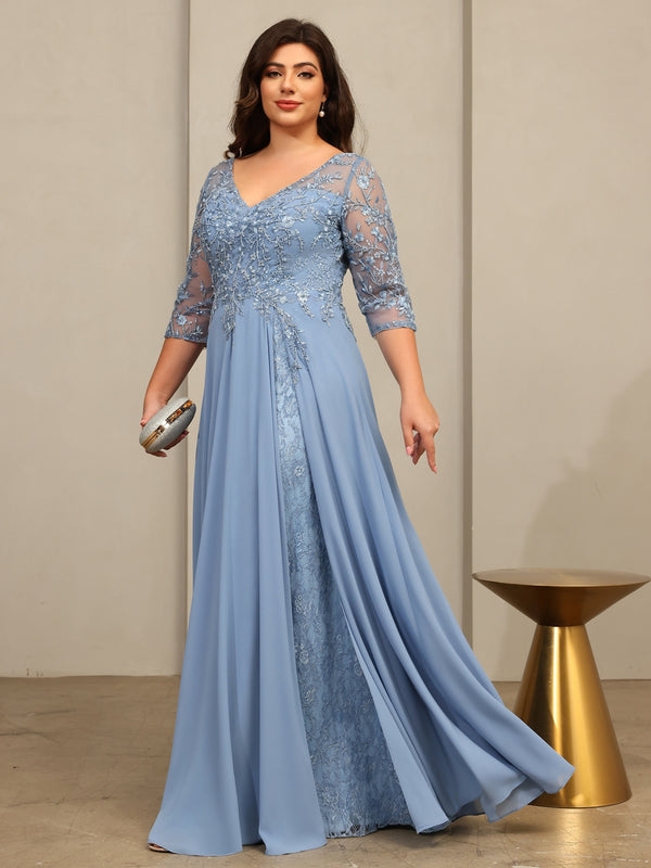 A-Line/Princess V-Neck 3/4 Sleeves Mother of the Bride Dresses with Pleated Lace Appliques