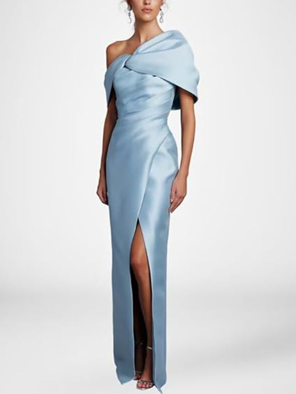 Sheath/Column Asymmetrical Floor-Length Pleated Mother of the Bride Dresses with Slit