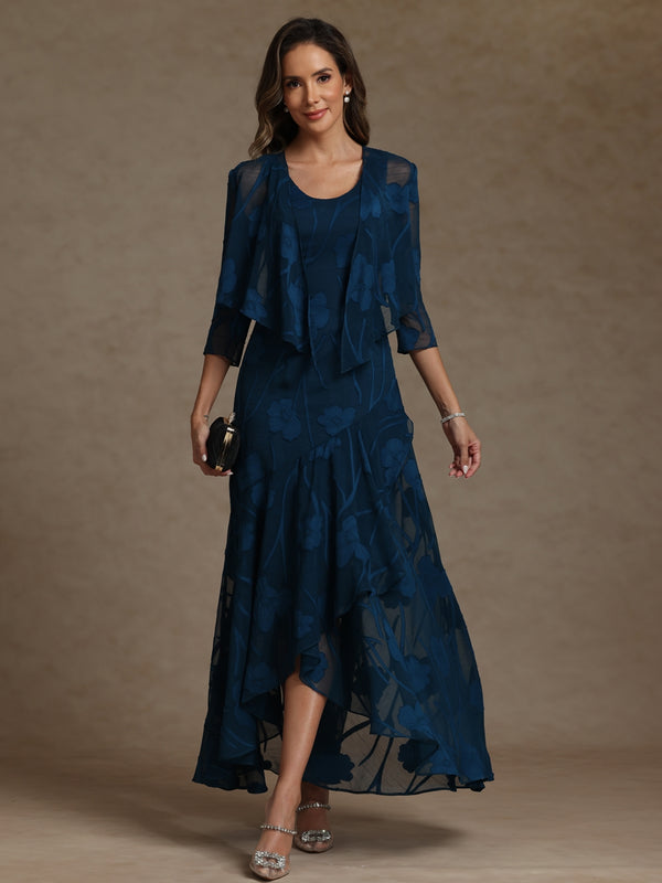 A-Line/Princess Two-Piece Asymmetrical Appliques Ankle-Length Mother of the Bride Dresses with Jacket