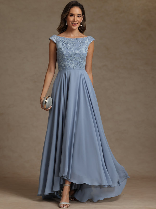 A-Line/Princess Boat Neck Asymmetrical Floor-Length Mother of the Bride Dresses with Sequins
