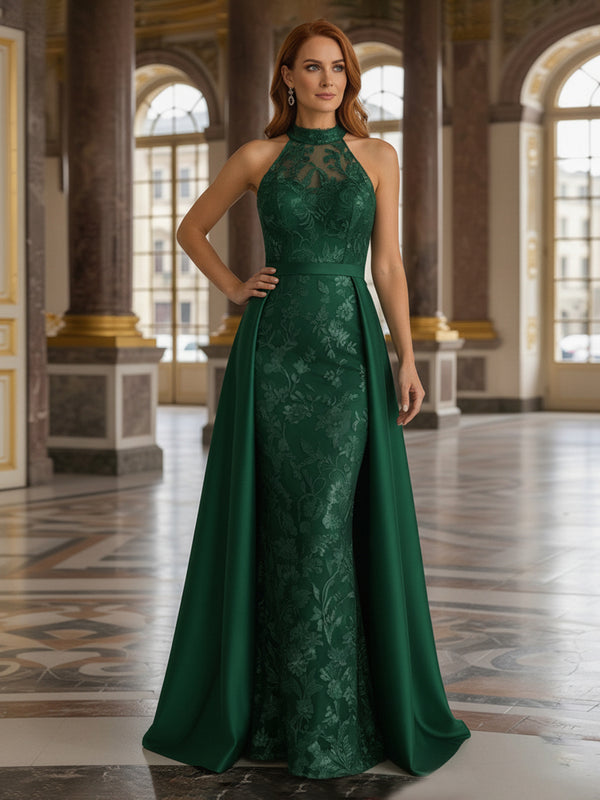 Sheath Floor Length Halter Lace Elegant Mother of the Bride Dresses with Jacquard
