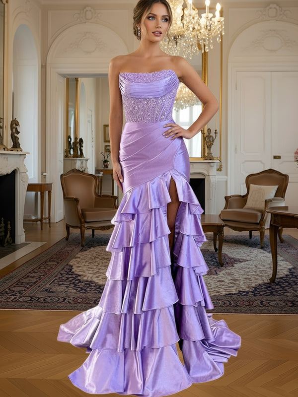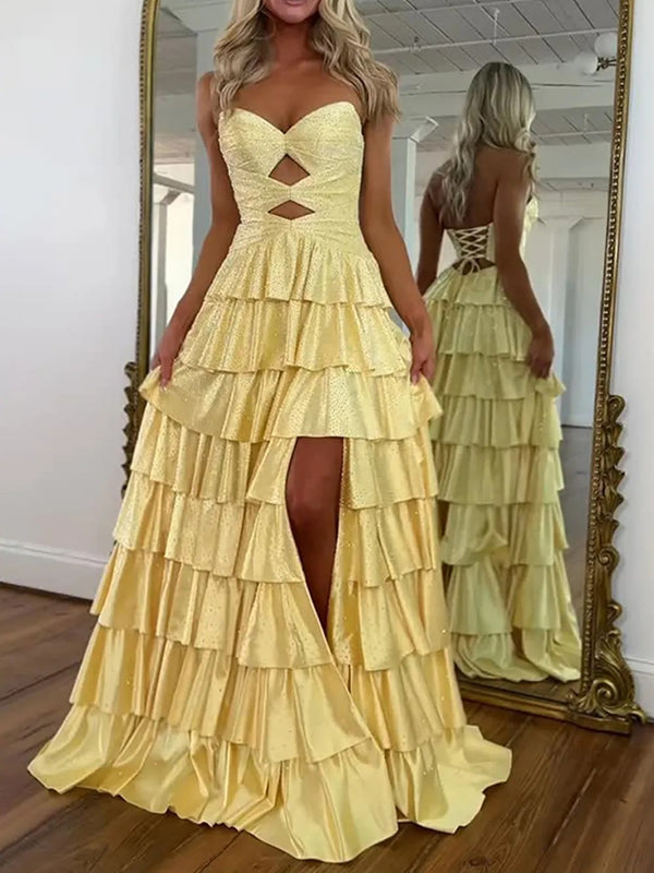A-Line/Princess Strapless Sweetheart Prom Dresses with Tiered Ruffles