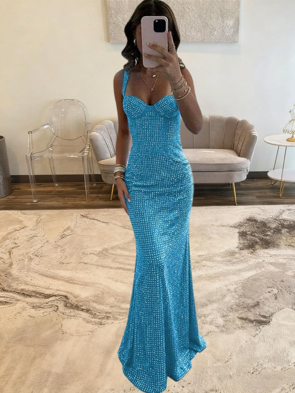 Mermaid/Trumpet Sweetheart Neck Spaghetti Strap Floor-Length Prom Dresses with Beadings