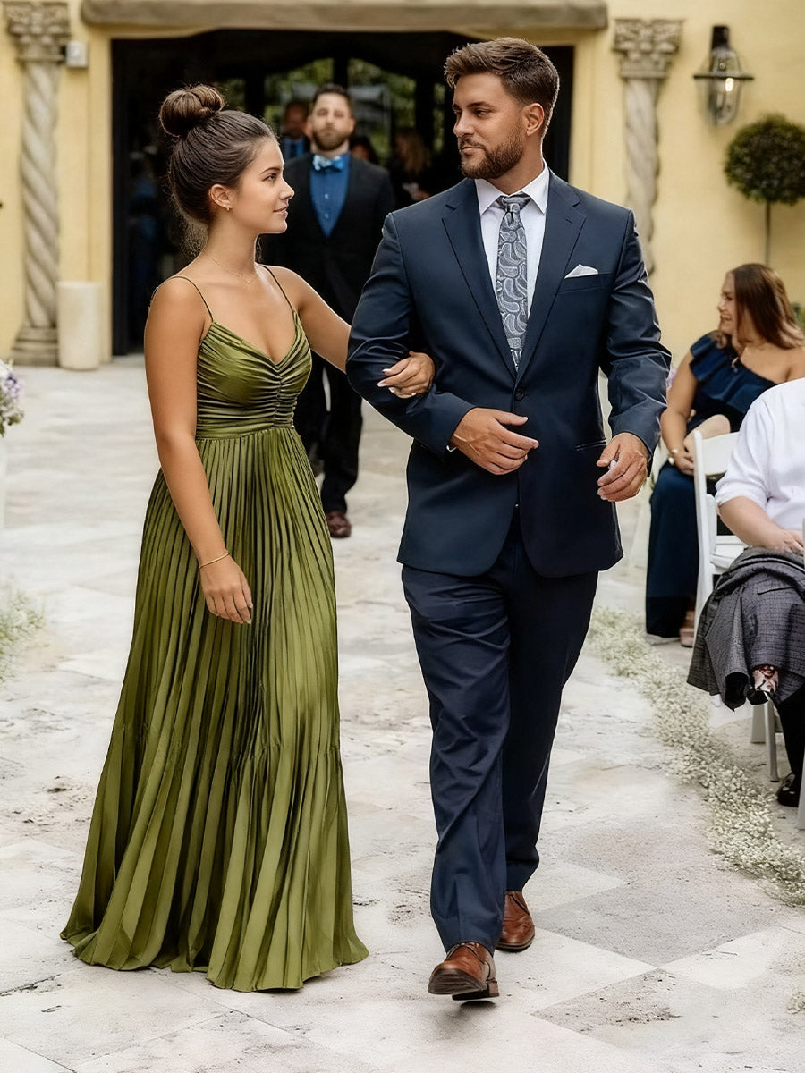 A-Line/Princess Spaghetti Strap Satin Floor-Length Prom Dresses