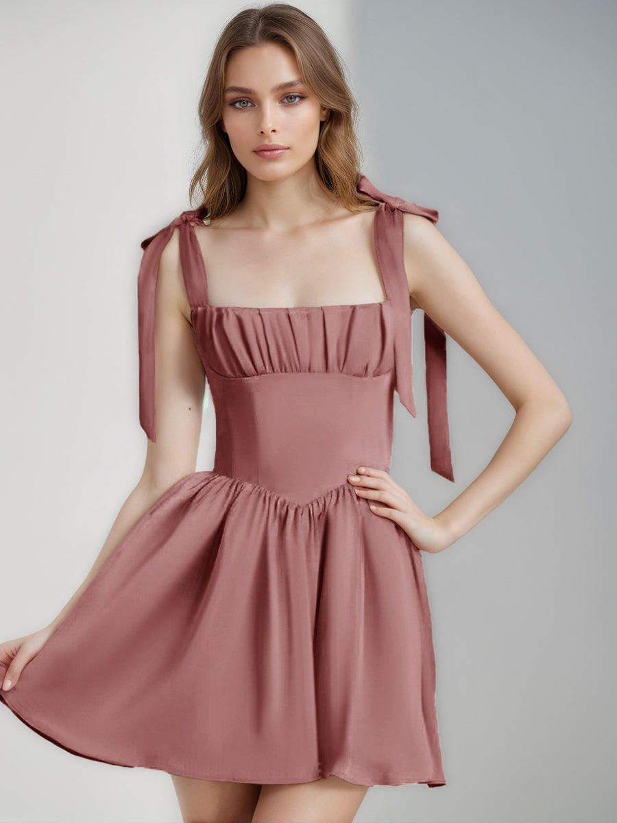 A-Line/Princess Square Sleeveless Ruched Short Elegant Cocktail Dresses with Bows