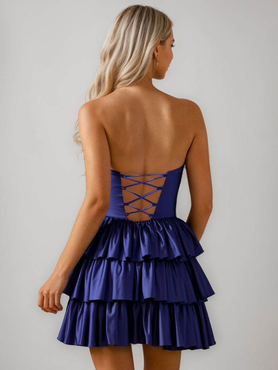 Ball Gown Strapless Ruched Short/Mini Cocktail Dresses with Cut-out & Tiered Ruffles