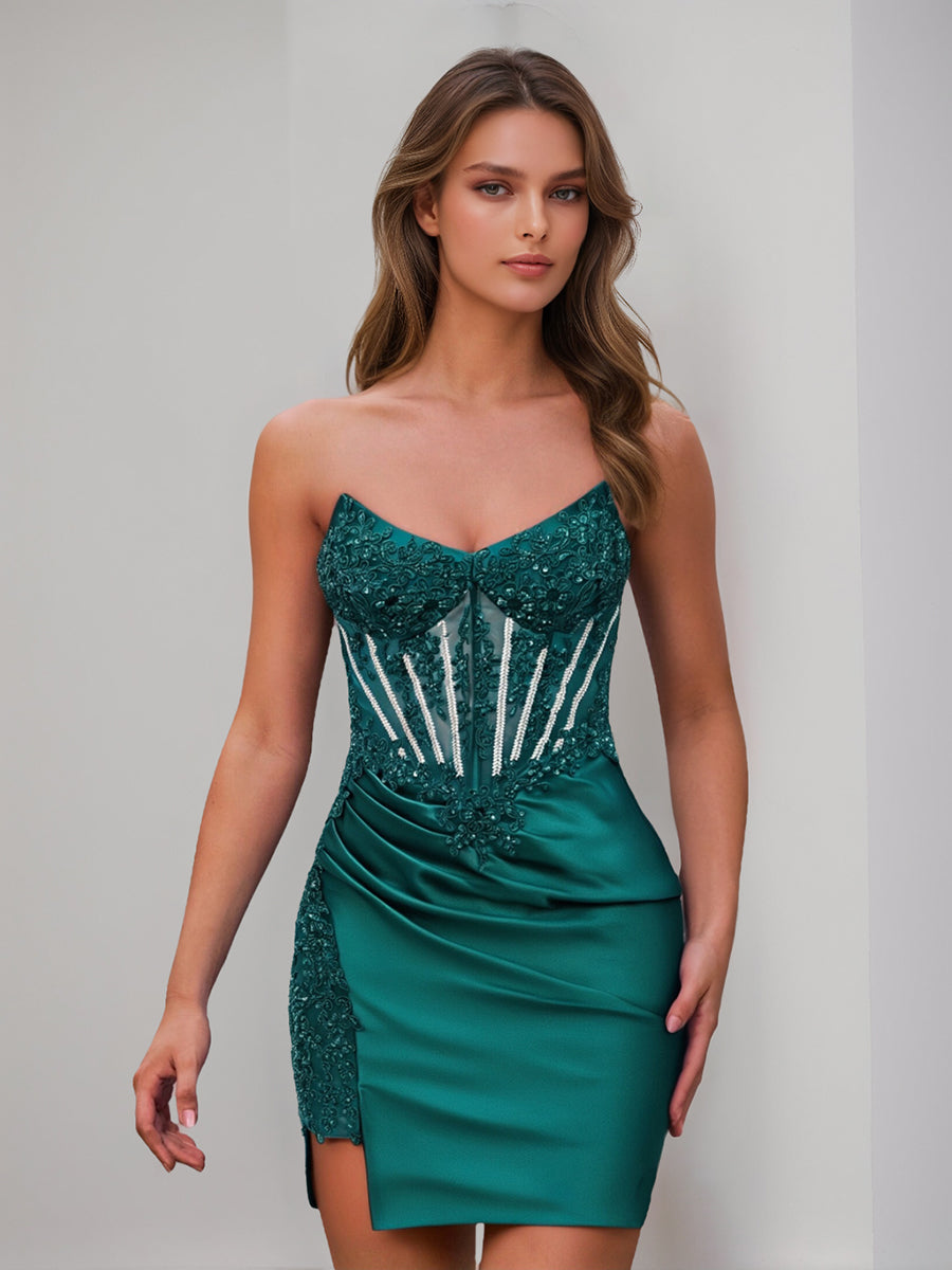 Sheath/Column Strapless Sleeveless Short Cocktail Dresses with Beading & Appliques