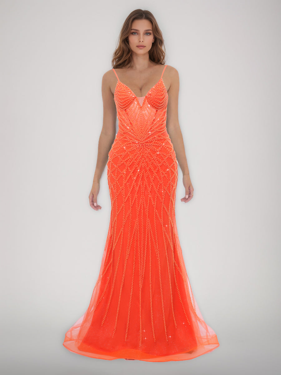 Trumpet/Mermaid Spaghetti Straps Sleeveless Long Prom Party Dresses with Pearls