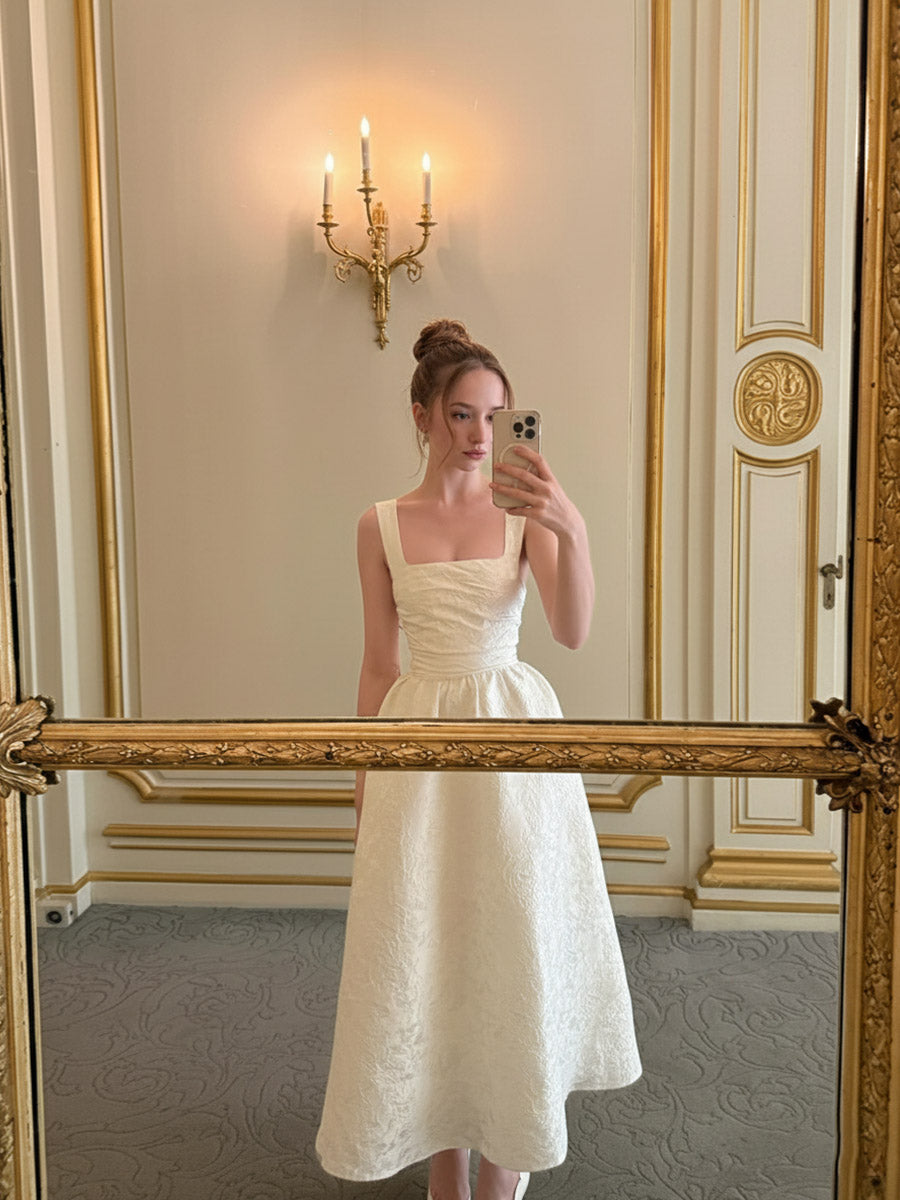 Vintage Spaghetti Strap Midi Prom Dresses with Floral Jacquard