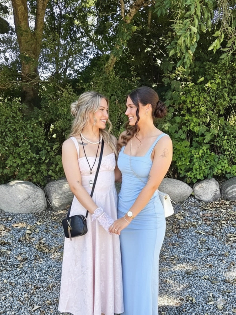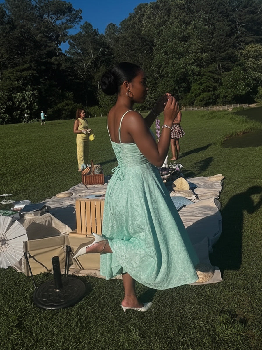 Y2K Spaghetti Strap Midi Prom Dresses with Floral Jacquard